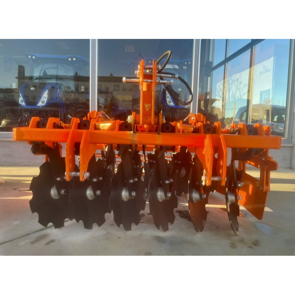 Grada rápida ligera de 12 discos de 22". Equipada con rodillo de varillas y cilindro en torreta para un mayor levantamiento.